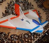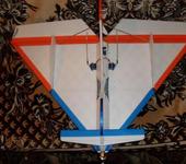 Сегодня повторно облетал треуголку, на этот раз подрегулировал выкос мотора, и нашол оптимальный ЦТ-18-19%. От ПГО пришлось отказаться, хватает и элевонов- модель может летать и медленно и быстро, хорошо планирует при откл. моторе.