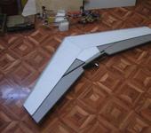 Вчера уточнил размеры, площадь получилась ровно 36 дм2. Вчера сделал элевон в один слой обклеил скотчем со стекловолокном, как-то показалось не очень жестко, склеил короче из двух слоев элевоны. Сегодня буду сажать на петли. Элевоны по краям 8 см, к центру скходятся до 4см. На каждый элевон думаю ставить 5 петель нейлоновых. Элевоны потом подрежу немного по толщине. Центровка в принципе должна получиться нормально, 220 см от передней кромки у меня выходит, получается близко к мотору. Буду регуль максимально к мотору двигать. Сервы тоже буду отводить назад. Вообщем дело двигается.