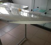 27-28 см начало среза от законцовки. Крутку можно сделать по соединению элевона и крыла, сделать продольный разрез снизу, отогнуть вверх как элевон (наверняка треммировали их малость вверх), а в образовавшуюся щель можно залить клей, типа ПУР 501 или монтажную пену забить шпателем, после высыхания зашкурить излом и обтянуть скотчем нижнюю плоскость. И желательно приклеить соединительные нервюры центроплана и консолей (чтобы центроплан не болтало в полёте).