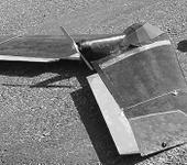 По задней кромке крыла наклеен армскотч черный. Снизу - широкий сверху - узкий. Элевоны из бальзы обшиты шпоном 1 мм и обклеены светоотражающим скотчем тонким.