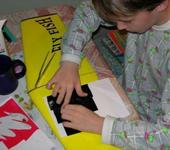 Собственно, с них все и началось 😃 Сначала просто так, чтобы опробовать новую термопилу и картонные шаблоны на двухстороннем скотче, вырезал одно крыло. Получилось красиво, потом другое. Попробовал после оклейки скотчем, натянуть его утюгом - жесткость повысилась очень сильно. Возникла идея с воском и наклейками.