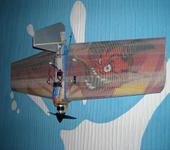 Первый типа торика из пилотажа. Летает со скоростью до 90 км/ч на трехбаночной батарее, потребляет на максимуме 10А, батарейка 1000 мАч, вес 280 грамм. В детском возрасте имел стандартную пластиковую мотораму, но она лопнула в минус 20 зимой. Сделал новую из стеклопластиковой трубки.