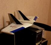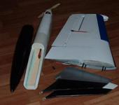 Нашел вот такое крыло www.flywood.de/orca.html и не удержался, решил соорудить, как раз испытал новую пену. Оригинал имеет 1460мм, у меня 1,2м + законцовки по 3 см, профиль дельта 400, предоставленный товарищем Черкашиным, он же используется для баклана, корневая 275, концевая 140, смещение 0. Взлетный вес с батарейкой 1300мА 2S -560грм, с батарейкой 610мА 2S-520грм, мотор 1600об/в 140w, немного получилась передняя центровка можно короче фюз делать, добавил руль направления, работает эффективно, понравилось, нагрузка с тяжелой батарейкой 21грм/дм.кв. проп 9/5.