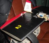 Путём шаловливых рук и подручных материалов крыло было по новой обтянуто и имплантирован сетап: двиг - Turnigy 2836 3700kv, регуль TURNIGY Sentry 60а, аккум G3 2,2а/ч 4S 35C, винты 4,1*4,1 и 4,75*4,75. С винтом 4,1*4,1 обороты на месте 36700. Время полёта 5-6мин. Т.к. внутрь крыла, начинка уже не умещалось, была сделана небольшая гондола. Вес не мерил, но грамм так 600.