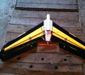 Осторожней с центровкой. Эта штука без хвоста, без стреловидности. Центровка понадобится процентов 10-15 от передней кромки, вместо обычных 25-35. И готовьтесь ловить его по тангажу, может быть очень нервным.
