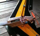 Фюзеляж намотан двумя слоями шпона на трубе подходящего диаметра. Слои шпона разделены подложкой для ламината. Консоли сделаны по пено-шпоновой технологии. Несколько предыдущих вариантов консолей пали жертвами флаттера - пену, там, я обтягивал бумагой. За прототип был взят беспилотник ScanEagle, однако, для простоты изготовления, пришлось сильно отойти от оригинала, т.к. совсем не хотелось, что бы сложность конструкции превысила мои возможности 😃