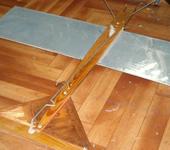 Когда все 17-е кончились В.Ф. Саленек перерисовал его в то, что вы пытаетесь делать для 2,5 см. куб.И еще преобразовал крыло, второе для симметричного полета. Вот снимки нессиметричног самолета и бак к стати крепился вместе с крылом несколькими резинками.