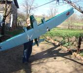 ТБ-1 в Алчевске совершил свой первый полёт. Постройка началась в 1994г. И вот он взлетел. Очень хотелось побывать на этом мероприятии, но не срослось. Леонид огромное спасибо за видео. Для первого полёта, я считаю, шикарно! Размах, три метра с хвостиком (точной цифры, как и веса, не помню). Движки, две Радуги-10. Обшивка, шлифованная с двух сторон липа (крыло и перед фюзеляжа) и бальза (хвост). У модели действующий бомболюк, я так понял, Кирилычу было не до бомб. К сожалению промежуточных фотографий процесса постройки (насколько мне известно) в природе не существует. Выкладываю имеющиеся у меня фотки аварии (почти достроенная модель спикировала на быльцу кровати, и в процессе покраски.