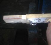 сегодня приезжал клиент сварить лопату ТИТАНОВУЮ и проволку соответственно принёс ТИТАНОВУЮ диаметром 3мм.лопату заварили а проволка мне осталась,я быстро из неё тягу рулевую смастырил получилось7,9гр.дюралевая весит 5гр.надо попробоват полетать не думую что три грамма повлияют на полёт но качество тяги мне понравилось.