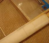 На правом еще один ремонт встык. На лонжеронах только по одному жгуту стеклоткани. Сам стык для эстетики может быть обклеен полоской бумаги (в данном случае это оставшийся после ремонта квартры малярный скотч).