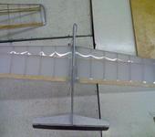 Крыло: нервюры - фанера 1мм (правда сейчас это жуткий дефицит, поэтому материал нужно менять, у нас пока имеется, но скоро закончится), лонжероны, передняя и задняя кромка - сосна