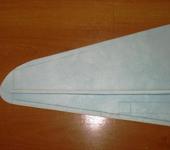 <br><br>Прочесс изготовления начинаем с крыла. Вырезаем из потолочки нижнюю часть с разметкой .Переднюю кромку(3 слоя потолочки), лонжерон (2слоя потолочки), , дополнительный лонжерон (1 слой потолочки), фанерную силовую вставку из 3 мм фанеры или ученических линеек шириной 30 мм склеенную тавром с пазом под раму(соединение в замок). Нижняя часть вставки служит для крепления стоек шасси. В соответсвующих местах на чертеже вырезается пенопласт в нижней части крыла 30х30 мм и на это место приклеивается дополнительная фанерная вставка таких же размеров. Лонжероны приклеиваются по месту клеем Титан и выполнятся своеобразный пенал из кусочков потолочки для последующей приклейки фанерной тавровой вставки.