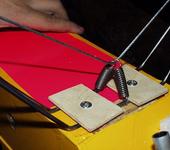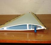 Продолжу. Вторая консоль изготавливается так же как и первая. Затем подгоняются по месту склейки торцы танкеткой( брусок) с наклеенной шкуркой под небольшим углом в соответствии с формой фанерной тавровой вставки. Приклеиваются верхние части законцовок и фанерная вставка в одно из полукрыльев. Делается прямоугольный вырез ножом в верхней части обшивки для стыковки фанерной вставки крыла и рамы. Еще раз проверяем стыковку левой и правой консоли крыла. Да, чуть не забыл перед приклейкой закоцовок необходимо заклеить во внешнюю свинцовый грузик 15-20 г весом, а во внутреннюю фанерный кронштейн для вывода корд и усилить вокруг кусочками потолочки. Затем склеиваем консоли крыла ивырезаеем в верхней обшивке прямоугольничек, так же как ив первой. Готовое крыло оклеиваем самоклеящейся пленкой с легким подогревом утюга.