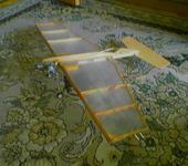 Самая простая будет 600х300, 3 нервюры. Передняя кромка - липа 12х12, задняя сосна - 6х6, нервюры из линеек, на центральной фанерные накладки уголком под крепление моторамы. Моторама из 10 мм фанеры, для заднего распределения такая конструкция будет неоптимальной.