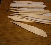 Если профиль по размаху не меняется, то я задаю размеры нервюр в Кореле, распечатываю на бумагу на принтере, наклеиваю бумагу на бальзу и потом вырезаю ножом и обрабатываю наждачкой по контуру. Точность хорошая, прочность бальзы тоже повышается, поэтому можно использовать более тонкие листы. На фотках ниже, показаны разные наборы, но суть понятна.