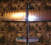 Да, крафт-бумага это обёрточная толстая. Очень прочная, даёт высокую жёсткость на кручение. Фюзеляж по такой схеме с давних времён делают - жёсткость и прочность достаточные. А лонжерон крыла конечно непривычен, но не я это придумал. Такие крылья имеют ряд преимуществ для учебок: простота и малое количество деталей. После обтяжки крыло на кручение очень жёсткое, на изгиб чуть податливое. Обшивка не имеет в задней части профиля опоры на нервюры - при выполнении, скажем, петли нижняя часть обшивки немного прогибается и профиль из симметричного на короткий момент становится выпукло-вогнутым. Подъёмная сила в момент поворота возрастает. Это похоже на эффект закрылков. Габариты твоего самолёта нормальные, меньше куда ж ещё. Я сам хотел сначала фюзеляж делать как у тебя из бальзы, но бальзы не было и я вспомнил старые технологии. Кстати, я набрал лишних грамм 40, сделав морду фюзеляжа из 15 мм липы. Можно было смело брать 10 мм. И ещё набрал грамм 50 на съёмном крыле - все эти ложементы и зашивка центра крыла фанерой. Полётный вес будет где-то около 730 г.