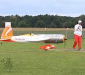 Модель очень эффектно смотрится, а фигуры хорошо читаются благодаря размерам и раскраске, но скажу честно мне выполнить 1…2 полета на нем терпимо, постоянно тренироваться тяжело, физическое напряжение мешает сосредоточиться на полете. При том, что мотор не вывернут из круга и выводы корд настроены на минимально приемлемое натяжение, чтоб не портить пилотажные качества модели…