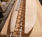 Несколько слов про лобик:для предварительной гибки сделал оправку-брусок дерева квадратного сечения, и на нем обработан был только один угол, спилен на радиус, соответствующий радиусу будущей передней части крыла. На нем согнут фрагмент лобика, потом на плоскости доклеивал недостающие части.(на циакрине).