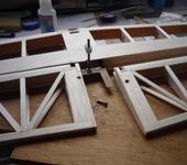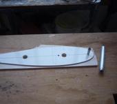 Стойки сделаны из проволоки 3мм( 65Г или ОВС), та часть, которая заходит в крыло согнута в виде прямоугольной скобы , промежуток заполнен фанерой 3мм с использованием эпоксидной смолы. Для увеличения жесткости стойка оклеивается бальзой , профилируется и оклеивается стеклотканью.