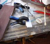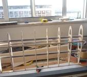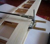 Несколько слов про лобик:для предварительной гибки сделал оправку-брусок дерева квадратного сечения, и на нем обработан был только один угол, спилен на радиус, соответствующий радиусу будущей передней части крыла. На нем согнут фрагмент лобика, потом на плоскости доклеивал недостающие части.(на циакрине).
