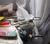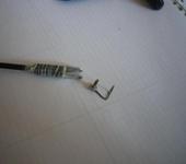 На торце скобы надфилем сделана канавка, чтобы круглая ось плотнее прилегла., также на оське сделаны насечки, ну шоб совсем крепко приклеилось.