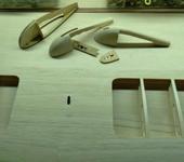 Рули навешиваются на шарниры/петли, выставляются в “0” и трубки фиксируются каплями циакрина. Потом рули снимаются и трубка уже качественно приклеивается: зазоры плотно заполняются бальзовой пылью и прокапываются циакрином (крыло в фюзеляж я тем же способом вклеивал) - спасибо за метод Славе Ямпольскому! (Этот форум- кладезь информации. Перечитываю как любимую книгу.) Поверх - приклеивается фанера 0,8мм. На моём фото у рулей высоты фанера уже приклеена, на закрылке - ещё нет.