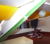 Здравствуйте все. Попробую продолжить начатое(пост 624). Стабилизотор крепится в фюзеляже одним винтом м3 и фиксируется шипом диам.3мм(бамбук, да здравствуют товарищи китайцы). Эту систему я увидел когда-то у Андрея Яценко(класика-2). Сначала нужно сделать ложемент, центральную часть стабилизатора защищаем чем -нибудь(скотч,лавсан) и создаем не-кую конструкцию, охватывающую этот самый стабилизатор. Стеклоткань, эпокс., пластинки бальзы. В районе передней кромки нужно сделать какой-то массив, в него в последствии заходит шип( я применил переклейку бальза-фанера).Когда смола застынет, сверлим насквозь этот массив и переднюю кромку стабилизатора. Теперь стабилизатор вынимаем и можно вклеить бамбуковый шип. Плотность посадки доводится круглым надфилем.Далее на ложементе крепим бобышку, несущую гайку м3, а на стабилизаторе-ушко с отверстием 3мм, соединение выполнено. Весь узел в сборе потом клеится на фюзеляже. Фото другого самолета, но принцип тот же