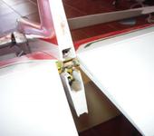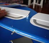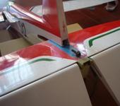 Здравствуйте все. Попробую продолжить начатое(пост 624). Стабилизотор крепится в фюзеляже одним винтом м3 и фиксируется шипом диам.3мм(бамбук, да здравствуют товарищи китайцы). Эту систему я увидел когда-то у Андрея Яценко(класика-2). Сначала нужно сделать ложемент, центральную часть стабилизатора защищаем чем -нибудь(скотч,лавсан) и создаем не-кую конструкцию, охватывающую этот самый стабилизатор. Стеклоткань, эпокс., пластинки бальзы. В районе передней кромки нужно сделать какой-то массив, в него в последствии заходит шип( я применил переклейку бальза-фанера).Когда смола застынет, сверлим насквозь этот массив и переднюю кромку стабилизатора. Теперь стабилизатор вынимаем и можно вклеить бамбуковый шип. Плотность посадки доводится круглым надфилем.Далее на ложементе крепим бобышку, несущую гайку м3, а на стабилизаторе-ушко с отверстием 3мм, соединение выполнено. Весь узел в сборе потом клеится на фюзеляже. Фото другого самолета, но принцип тот же
