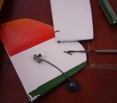 Проблема в том что качалка стоит традиционно между полками лонжерона, но лонжерон близковато к перед ней кромке - 25-26% от хорды. Соответственно вывод перед ней корды получится за лонжероном и кроме того корда будет иметь приличный изгиб и трение в месте вывода. Посему хотел еще спросить - как лучше сделать вывод кордов чтоб меньше терлось? И груз на внешнем крыле наверное лучше как можно дальше сместить вперед по хорде законцовки.