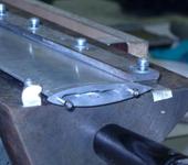 Потом все в стапель и на батарею, прогрев 60-80 град в течении часа полутора!!! Через сутки можно вынимать. Потом лишний клей прошкуривается с задней кромки, ее немного закругляют. Затем наклеиваю усиливающие полоски из жести, в места наибольшей нагрузки (центроплан, точка опоры телеги, костыль, законцовка). Использовать заклепки не нужно!!! Потом крыло можно прошкурить и отполировать. Крыло готово. -