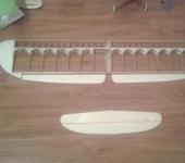 В итоге нашел на всем базаре 2 трехметровых сосновых плинтуса, легких и без сучков. Один плинтус оказался тяжеловат. а из второго сделал фюзеляж, хвостовое оперение и закрылки, обошлость это чудо в 200 росс.рублей.