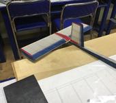 Крыло резалось повдоль в зоне наибольшей толщины и вклеивал лонжерон из берёзовых школьных линеек. Обтяжка диаграммной бумагой на ПВА и нитра из баллончиков с 30-40 сантиметров