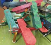 Стойки фанерные, киль из переклея электрокартона. Крылья из фанеры от фруктовых ящиков–очень легкие.