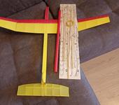 А тот что на резинке, разве только на резинке, склеить его ровно еще тот геморрой, эллипсное крыло, этой конструкции из фанеры, с фанерными лонжеронами, даже стапель не помог… Собирал-знаю. Но главный плюс такого набора, почти ноль опилок при сборке дома. И летит хорошо.