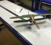Фотографий сборки к сожалению нет. В данной модели в разрезе с инструкций тяга руля высоты сделана наборной: проволока ОВС-деревянный шток-проволока ОВС, в связи с нЕвозможностью нормального полета с тягой только из проволоки( модель не держала горизонт, постоянно «гуляла» и т.п. С измененной тягой летит стабильно. Закрутка нижнего крыла произошла самопроизвольно примерно через пол года после сборки( перед сборкой вся фанера была винтом, что вызвало необходимость в исправлении путем пролива кипятком и последующей сушки под прессом). В инструкции предлагается использовать двигателя Мк-12, но такого в тот момент не было, как и Мк-16, поэтому установлен Мк-17. Винт деревянный, собственного изготовления.