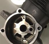 Давно доказано, что никакие лопатки и прочие хитрости синхронные валу не работают и работать не могут, только могут мешать. Всякая доработка в полости ДВС должна способствовать сокращению пути смеси к окнам и уменьшению смачивания нерабочих поверхностей. Уже писал, повторюсь, серийный “Пико 21” с небольшими доработками, на сертифицированном стенде показал мощность 3,5 кВт, т.е. литровую мощность 1000кВт*литр.