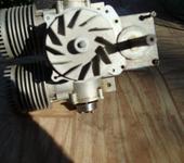 Мотор Дискавери Дабэл 60, изготовитель Юрий Яценко имеет два цилиндра в ряд и карбюратор между ними.