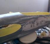 Здравствуйте все, работа с фюзеляжем продолжена. Обтянул стеклотканью, пошкурил, загрунтовал, опять пошкурил, сделал нужные вырезы и надрезы, болванка была извлечена. вес корки 185г. Мотораму взял от старого самолета. немного переделал чтобы удлинить нос, теперь будет 270мм(был 260), мотор будет все-таки Дискавери, установка-головой вниз, глушитель под капотом.