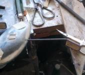Основная ошибка допущена на этапе, описанном в посте 208. Нужно было после того, как закончена эта обечайка, хорошенько ее проэмалитить, пошкурить, где нужно зашпаклевать щели тальком, короче довести поверхность до идеала, я этого не сделал, а сразу наложил стеклоткань. В итоге смола ушла в щели между рейками, это обнаружилось после, когда шкурил с водой после грунтовки, появились дыры, много, пришлось их шпаклевать, ямы и уступы, тоже шпаклевка.