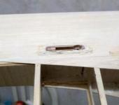 Решил шасси перенести на крыло , стойки сделаны из проволоки 3мм, из фанеры сделаны гнезда для фиксации, от выпадания стойки удерживаются винтом и шайбой., резьба нарезана в пластмассовом сухаре, без ниток не обошлось. Гнезда вклеены в консоли, использована еще одна фанерная пластина, она в свою очередь приклеена к полкам лонжерона и к самой зашивке лобика.