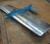 Вторым был “Дасти”, с сынулей решили построить что-нибудь эдакое. Все размеры такие же, как на первой модели, за исключением толщины профиля крыла - 20 в корне и 15 на концах. Это было сделано для установки качалки внутрь крыла. Крыло сделано по “бойцовой” технологии, с пенопластовым лобиком. Модель делал в основном сын, материалы использовались с большей плотностью, в силу этих причин модель получилась тяжеловата.