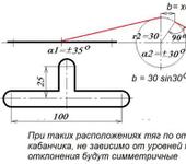Все размеры в кинематической цепи считаются (строятся) не сложно, нужны исходные данные: а) геометрия и отклонения главной качалки; б) желаемое отклонение стабилизатора, в соответствии с макс. отклонением главной качалки