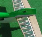 Эта же технология применяется на модели Ares Билла Вервижа. Ее приемущество в очень экономном расходе бальзы, т.к. вырезаются одинаковые дугообразные заготовки полунервюр. Т.е. на набор крыла примерно уйдет 2 пластины бальзы.