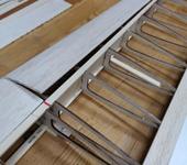 Ось качалки из 3мм стальной трубочки вклеена в пластины 10*65мм из 3мм 5-тислойной фанеры которые в свою очередь приклеены к лонжерону между 1 и 2 нервюрами внутреннего крыла.