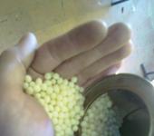 Желтый оттенок гранул появился после того, как они полежали в банке от кофе.