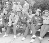 Представители сборных команд СССР и УССР. Слева на право, В. Жельман (F2C, Ленинград), (УССР - ?), А. Жебряков (F2A, Горький), А. Золотоверх (F2C, Сочи), А. Бабичев (F2C, Киев), (УССР - ?).