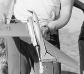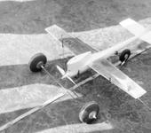 Скоростные модели (команда США), вероятно один из первых вариантов применения металлического крыла на моделях класса F2A. Резиновые колеса на тележке были нами отвергнуты уже давно. Слишком сильное сцепление с асфальтом мешает разбегу модели.
