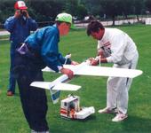 Гонщики - Василий Ефремов и Сергей Кузнецов, Валерий Крамаренко на корточках. Со скоростной моделью - Владимир Маслёнкин, рядом с ним Сергей Костин. С пилотажкой Анатолий Колесников.