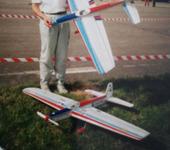 Правда модель не сохранила родную окраску, найдена была довольно в плачевном состоянии, его друг отреставрировал и перетянул ее, пару раз поднял в воздух, теперь у меня на складе пылится.