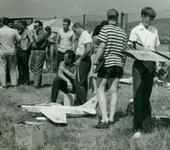На первом фото очень похоже на ожидание полёта в туре или подлёта на международных соревнованиях, на втором одна из моделей Юрия с одноколесным основным шасси как на гонке и мотором MVVS 5,6 A, эта модель есть в его знаменитой книге, вес по чертежу 950г.